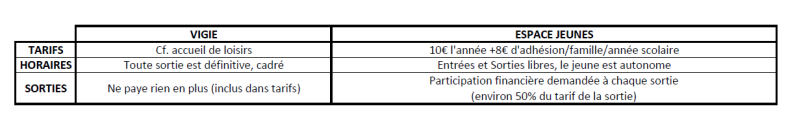Les 4ème et les 3ème ont le choix entre le groupe préados à la vigie ou le groupe ados à l'espace jeunes.
